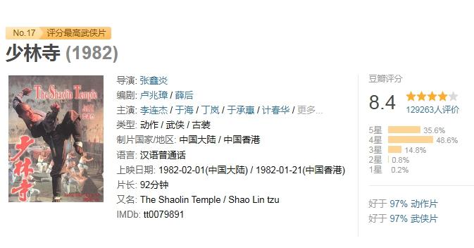 她举了一个例子:上世纪八九十年代,《少林寺》等颇受观众喜爱的武侠片,基本都有以下特点:“硬桥硬马”的打戏较多,往往通过叙事来营造一个武侠宇宙,也就是“江湖”,彼时武侠片热度很高,《少林寺》更是引发“万人空巷”的观影盛况。