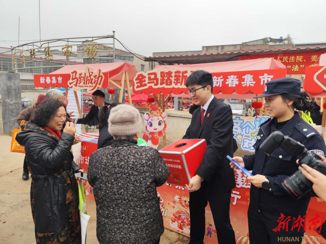 湘潭公安、法院、司法部门联合在姜畲赶集处开展宣传。