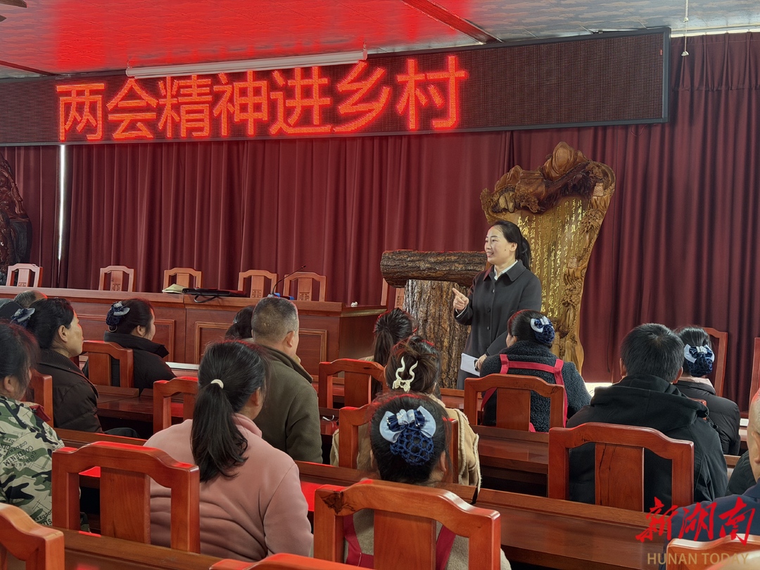 宣讲中,陈梦林还结合两会关于“三农”工作的部署,解读了“锚定农业农村现代化,扎实推进乡村全面振兴”的要求。她说,两会强调深化“文旅体商”融合发展,培育壮大乡村特色产业,三联峒的好山好水就是最大的底气,既要护好绿水青山,也要做好文旅文章,让生态优势转化为发展优势,让村民在家门口实现增收。