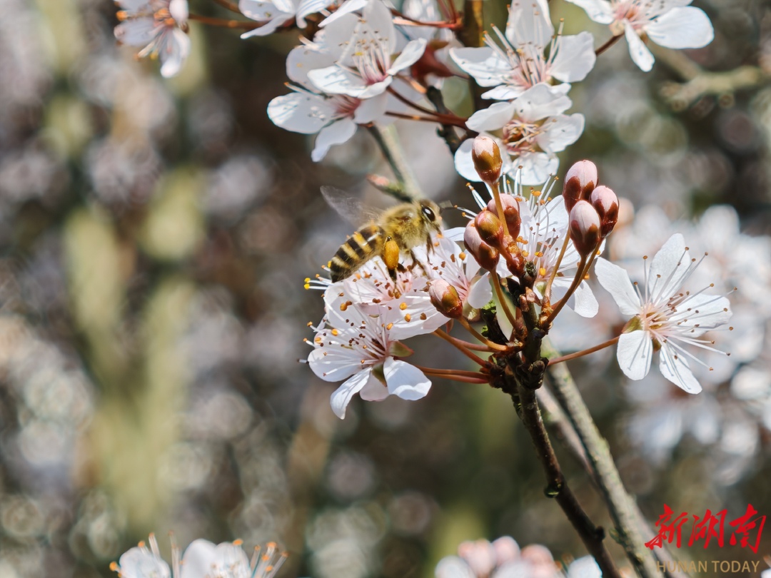 春风拂过湘南学院的校园,唤醒了满枝芳华。洁白的李花缀满枝头,在澄澈蓝天的映衬下,似雪般轻盈,簇簇绽放间晕染出春日的诗意。蜜蜂穿梭于花蕊间,嗡嗡声里藏着生机盎然的序曲。