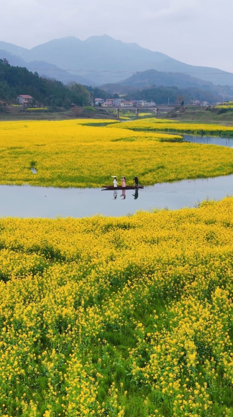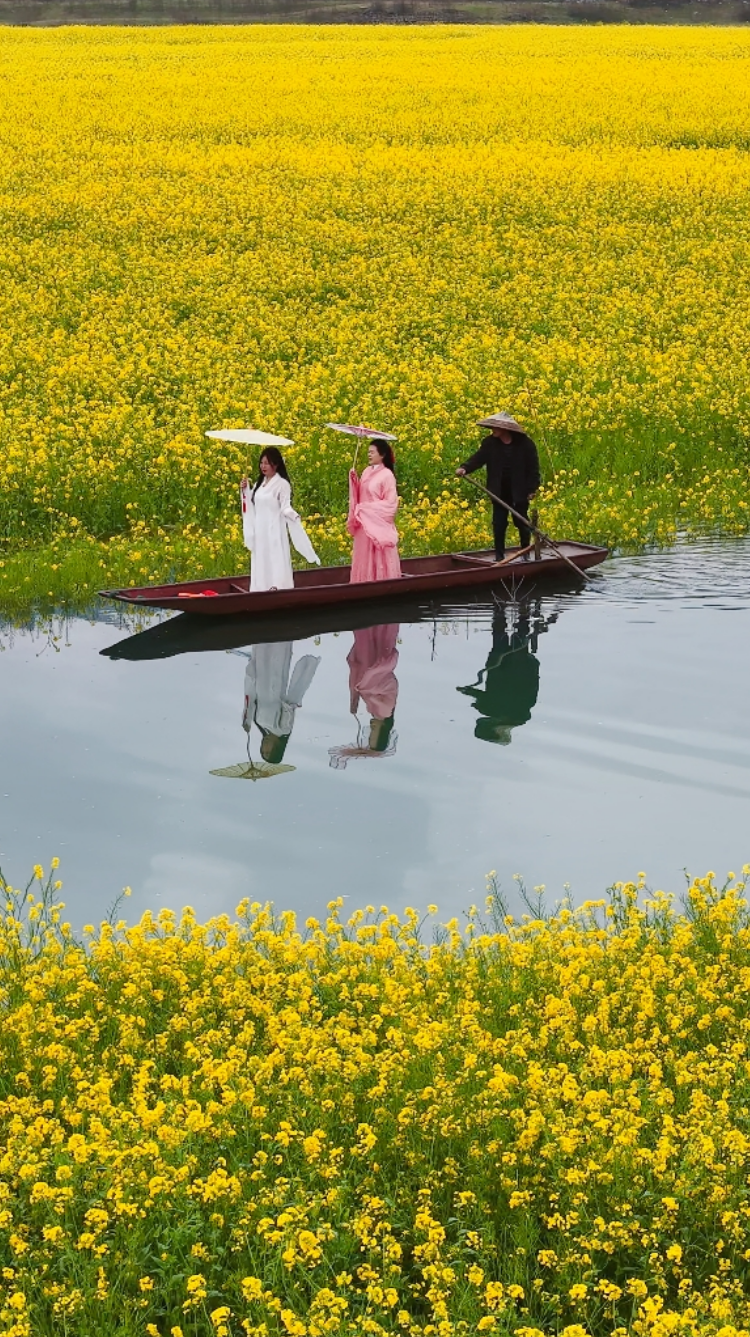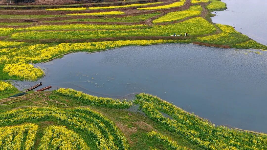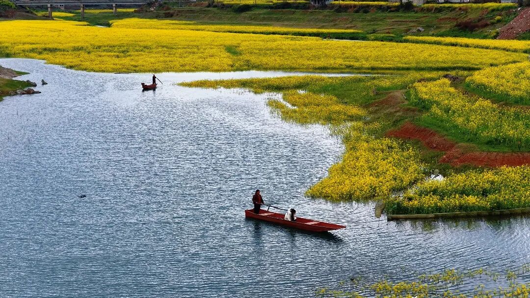 你见过长在水里的油菜花吗?在辰溪县长田湾水库,一场持续的春雨,竟“浇灌”出了一片独一无二的梦幻奇观——水上油菜花海。