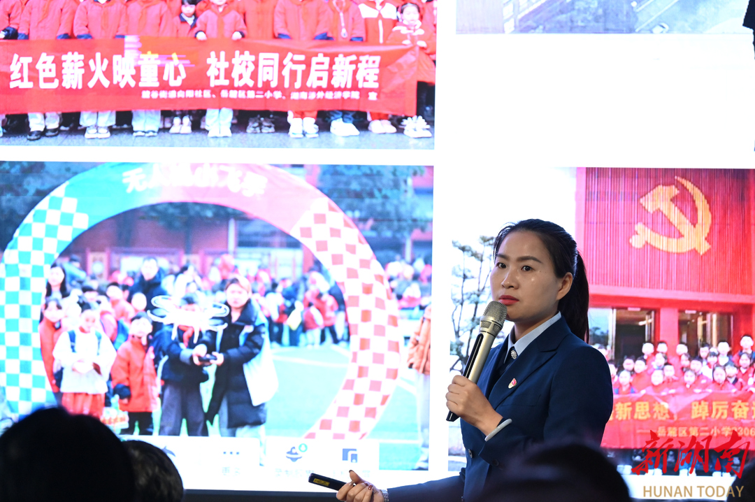 精彩的课堂展示后,岳麓二小学生发展处刘艳主任进行了专题分享。她以《借力“教联体”,画好育人“同心圆”》为题,详细介绍了该校在探索家校社协同育人方面的创新实践——“1+4+N”教联体工作模式。该模式通过整合校内领导小组、专业工作室与社区、高校、场馆等N类社会资源,有效破解了育人难题,拓宽了教育边界,为在座各校提供了可借鉴的德育工作新思路。