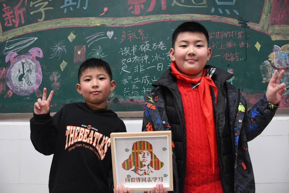 当一幅幅带着掌心温度的竹编画陆续完成时,孩子们迫不及待地高高举起作品。有的兴奋地蹦跳着向志愿者展示自己编出的雷锋头像,有的拉着小伙伴畅谈创作感受。一个小女孩更是捧着自己的作品跑到班主任身边,仰起脸认真地说:“老师,我要把它摆在床头,每天都向雷锋叔叔学习!”
