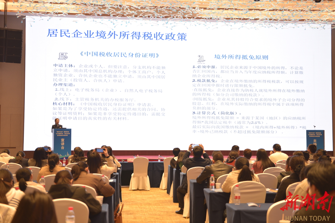 活动现场,来自税务、金融、外贸等领域的专家围绕企业合规管理、跨境税收优惠、跨境金融产品、海外市场拓展等内容进行专题授课。岳阳市税务局业务骨干就企业出海税务政策作详细解读,帮助企业吃透国际规则、规避跨境税收管理风险。