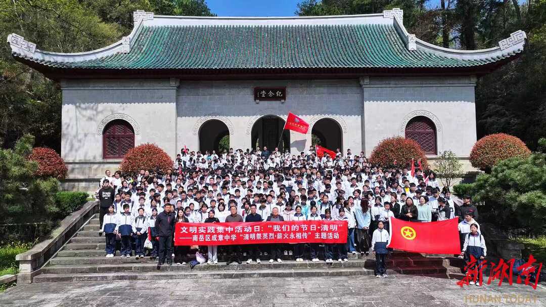 湖南日报·新湖南客户端4月3日讯(通讯员 赵丹)春风寄哀思,松柏慰忠魂。为深入推进新时代文明实践,传承红色基因,厚植家国情怀,4月1日,南岳区成章中学组织七年级全体师生走进南岳忠烈祠,开展“清明祭英烈 薪火永相传”新时代文明实践主题活动,以庄重仪式缅怀革命先烈,赓续红色血脉。