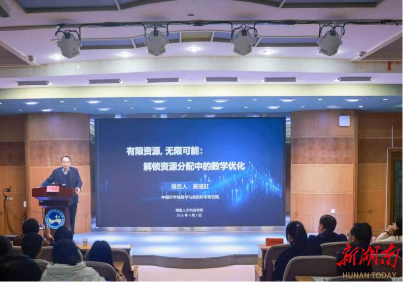 湖南日报·新湖南客户端4月3日讯(通讯员 朱彦霖 唐宇兴)4月3日上午,中国科学院院士、中国科学院数学与系统科学研究院副院长戴彧虹研究员应邀莅临湖南人文科技学院,在养根楼报告厅作题为“有限资源,无限可能:解锁资源分配中的数学优化”的科普讲座。湖南人文科技学院副校长张细政主持报告会。