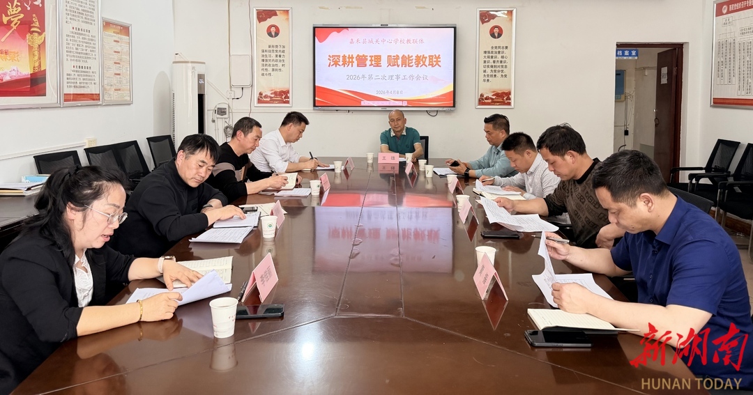 科教新报·新湖南客户端讯(通讯员 罗苏文)4月8日,嘉禾县城关中心学校教联体2026年第二次理事工作会议顺利召开。会议以“深耕管理 赋能教联”为主题,总结工作成效、部署发展任务,进一步凝聚校际发展合力,推动区域教育优质均衡发展走深走实。县教育局教科院院长王雄出席会议,教联体各成员校校长参会,会议由教联体理事、珠泉二完小校长李日发主持。