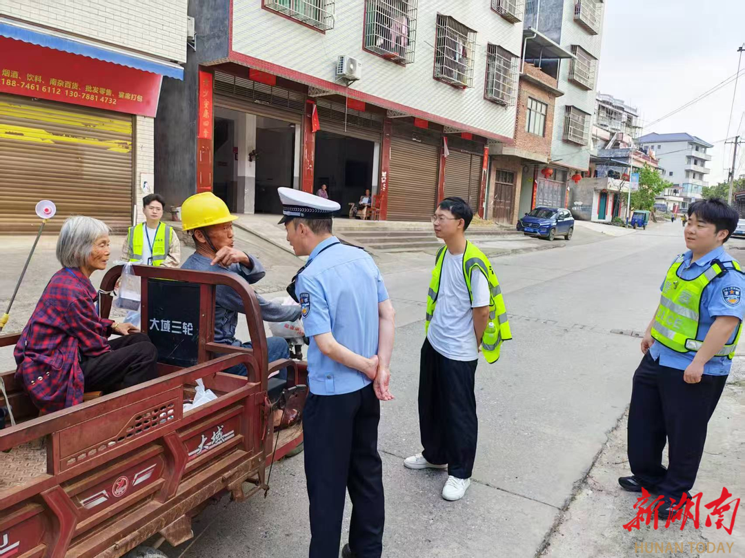 在集镇宣传环节,结合赶集日人流集中的特点,一方面,应急办工作人员对骑摩托车不戴头盔、三轮车违规载客等行为进行耐心劝导和安全教育;另一方面,联合双牌县打鼓坪交警中队开展联合执法,对无牌照摩托车进行登记管理,强化路面管控。