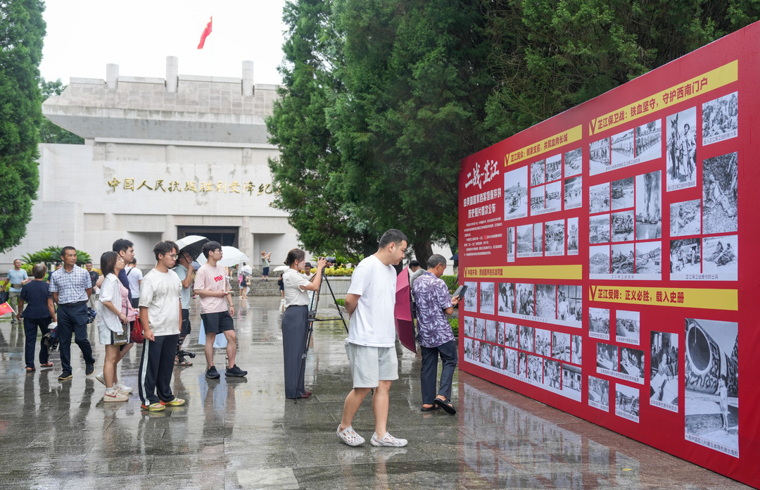 中国人民抗战胜利受降纪念馆,游客在观看芷江抗战历史照片。 图源:湖南日报