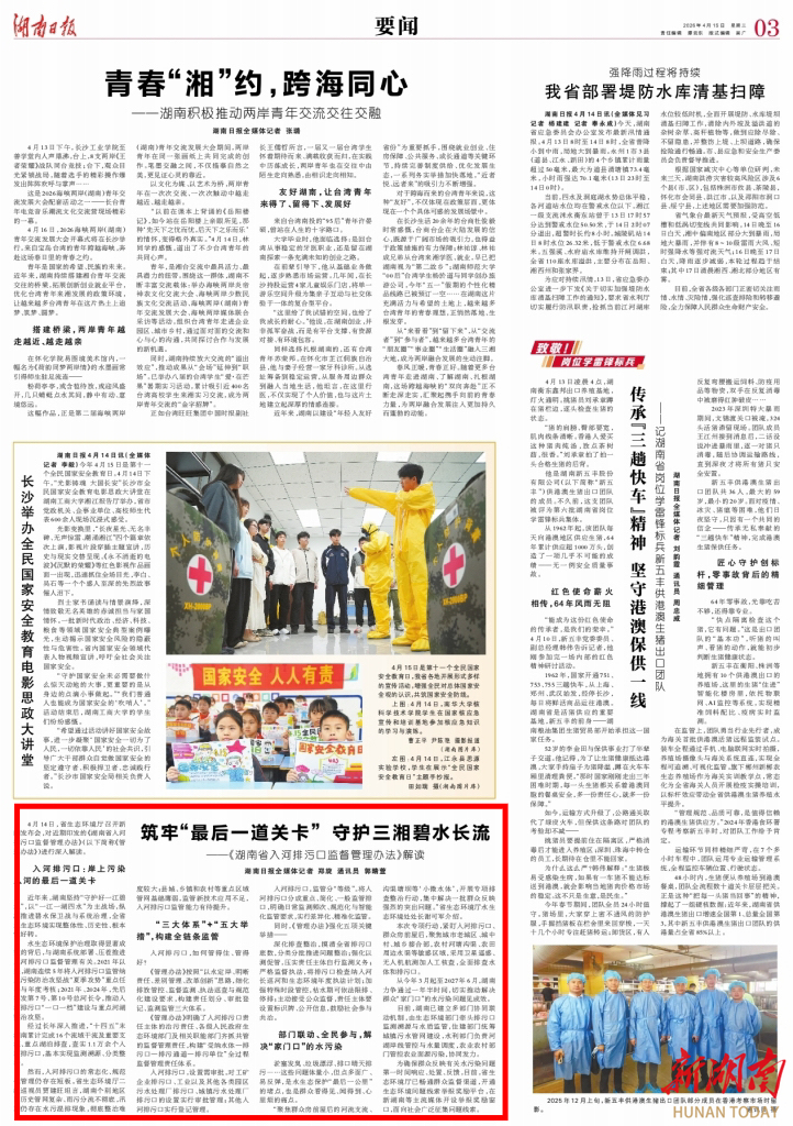 从今年3月起至2027年6月,湖南力争通过一年半时间,切实推动解决群众“家门口”的水污染问题见成效。