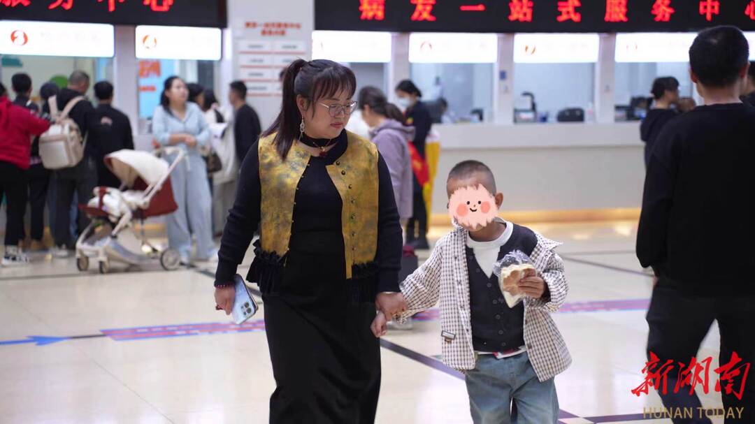 图为妈妈带着俊俊回湖南省儿童医院复查