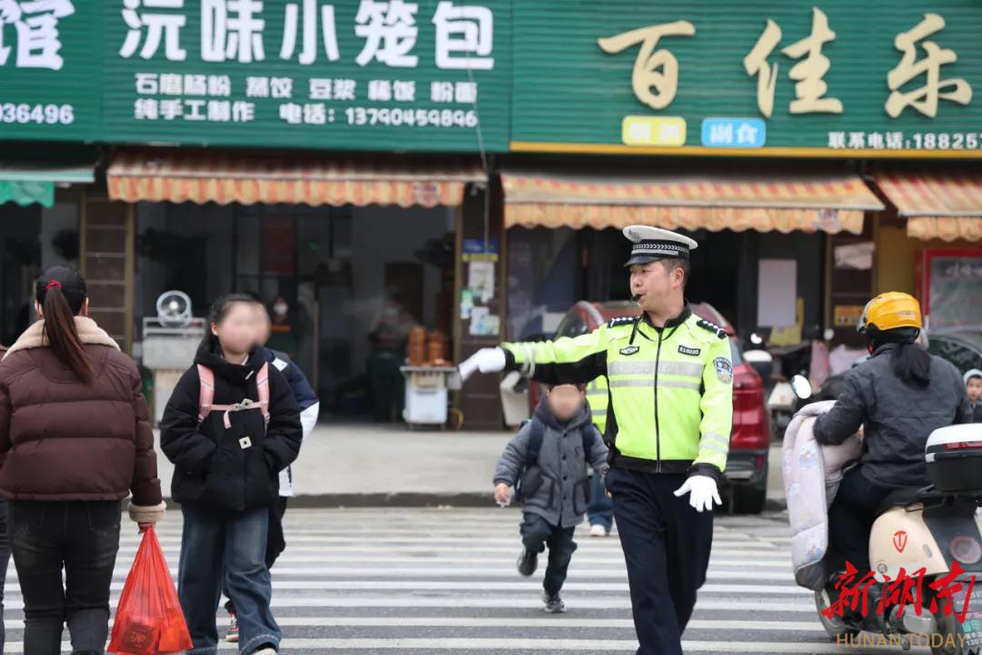 针对辖区部分学校周边交通环境复杂、人车流量大的情况,隆回公安交警科学部署警力,在重点时段、关键路口设立常态化“护学岗”。执勤民辅警指挥疏导交通,引导学生安全通过马路,规范车辆有序停放,有效缓解上下学高峰时段的交通压力,为学生们搭建起一道坚实的安全屏障。