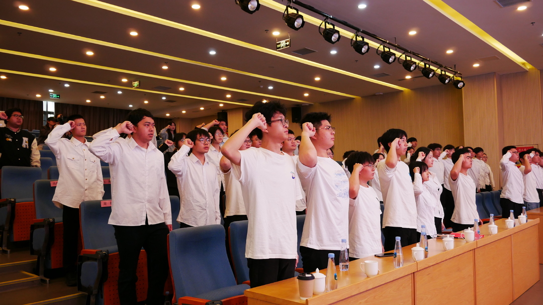 宣讲尾声,宣讲团队与现场大学生共同庄严宣誓:“以吾辈青春,护锦绣山河;以热血担当,慰先烈忠魂。”铿锵誓言回荡报告厅,并通过网络同步传递到每一个收看班级,将活动氛围推向高潮。