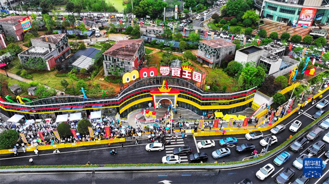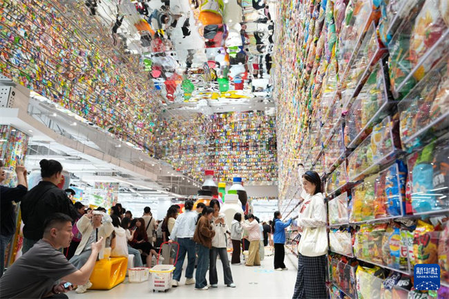 The "Kingdom of Snack," an immersive snack experience store, opened at Furong Square in Changsha on April 17, 2026. This 1,200-sqm store houses more than 6,500 brands and over 35,000 varieties of commodities, offering the consumers an immersive experience integrating shopping, photographing, and interactive activities. The photo shows people queueing up for visiting the store on that day. (Photo/Ding Chunyu, Xinhua)