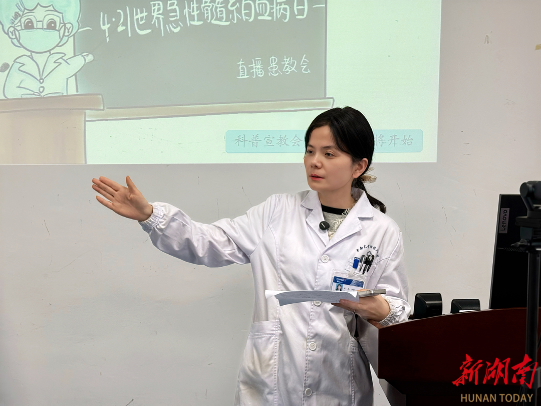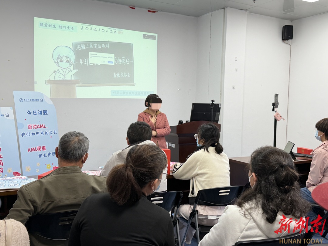 4月21日是世界急性髓系白血病日,也是全国肿瘤防治宣传周的最后一天。当天下午,湘雅三医院血液内科以“髓爱新生·精彩生活”为主题,通过线上线下同步的方式举办了一场特别的科普宣教活动。没有枯燥的说教,只有专家深入浅出的讲解和病友真诚的分享,为无数正在与急性髓系白血病抗争的家庭送去了一束光。