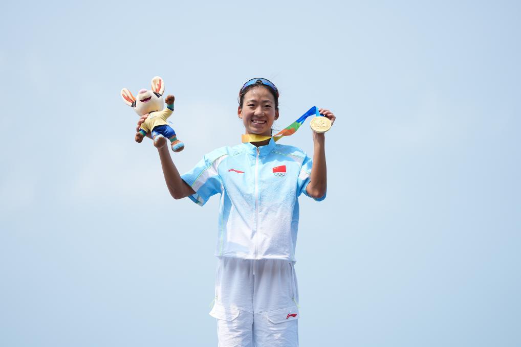 范俊杰当日的幸福不止于此,在游跑两项女子个人赛中,他的妻子林鑫瑜同样率先冲线,夫妻二人包揽该项目当日的两枚金牌。